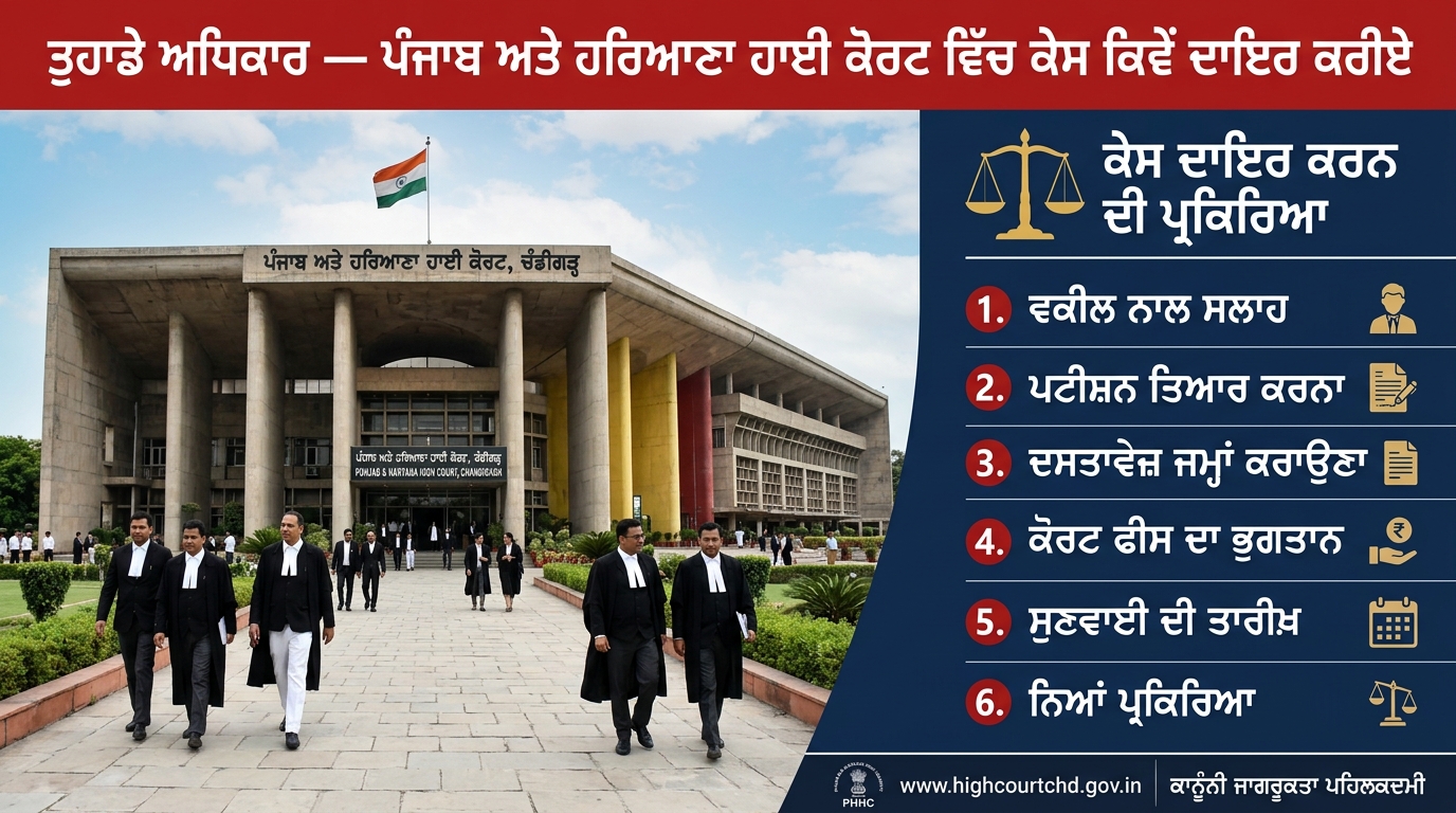 ਤੁਹਾਡੇ ਅਧਿਕਾਰ ਤੁਹਾਡੇ ਅਧਿਕਾਰ — ਪੰਜਾਬ ਅਤੇ ਹਰਿਆਣਾ ਹਾਈ ਕੋਰਟ ਵਿੱਚ ਕੇਸ ਕਿਵੇਂ ਦਰਜ ਕਰੀਏ ਅਦਾਲਤਨਾਮਾ ਟੀਮ Apr 16, 2026